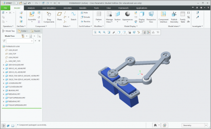 Description: I saw a video of the plot clock on youtube which uses a similar 2 degree of freedom system to write the time every minute. I decided to figure out the inverse kinematics for the system and designed the parts in Creo to learn a new CAD software. This system utilizes servos that I had lying around as well as bearings for smooth and low friction motion. The UI is a single square pad that directs the manipulator where to move.