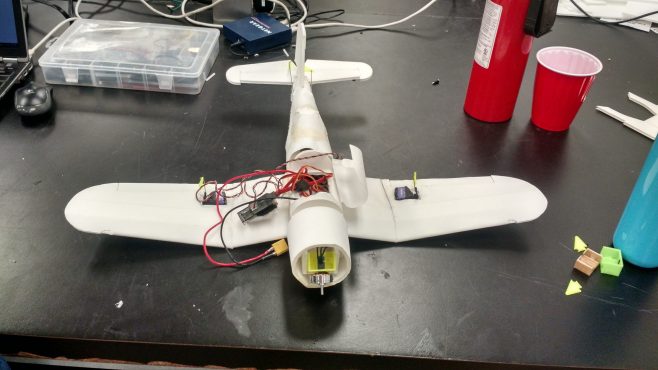 Description: My housemate and I found plans online for a scratch built airplane. We made it out of foam board and harvested the electronics form another crashed RC plane. A few parts are 3D printed because we didn’t have control horns or a motor mount for the plane. It didn’t survive very long because we were both learning to fly.