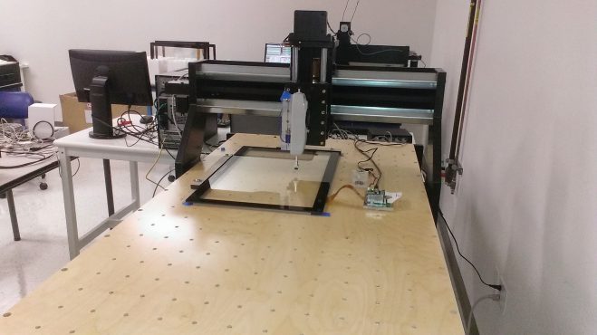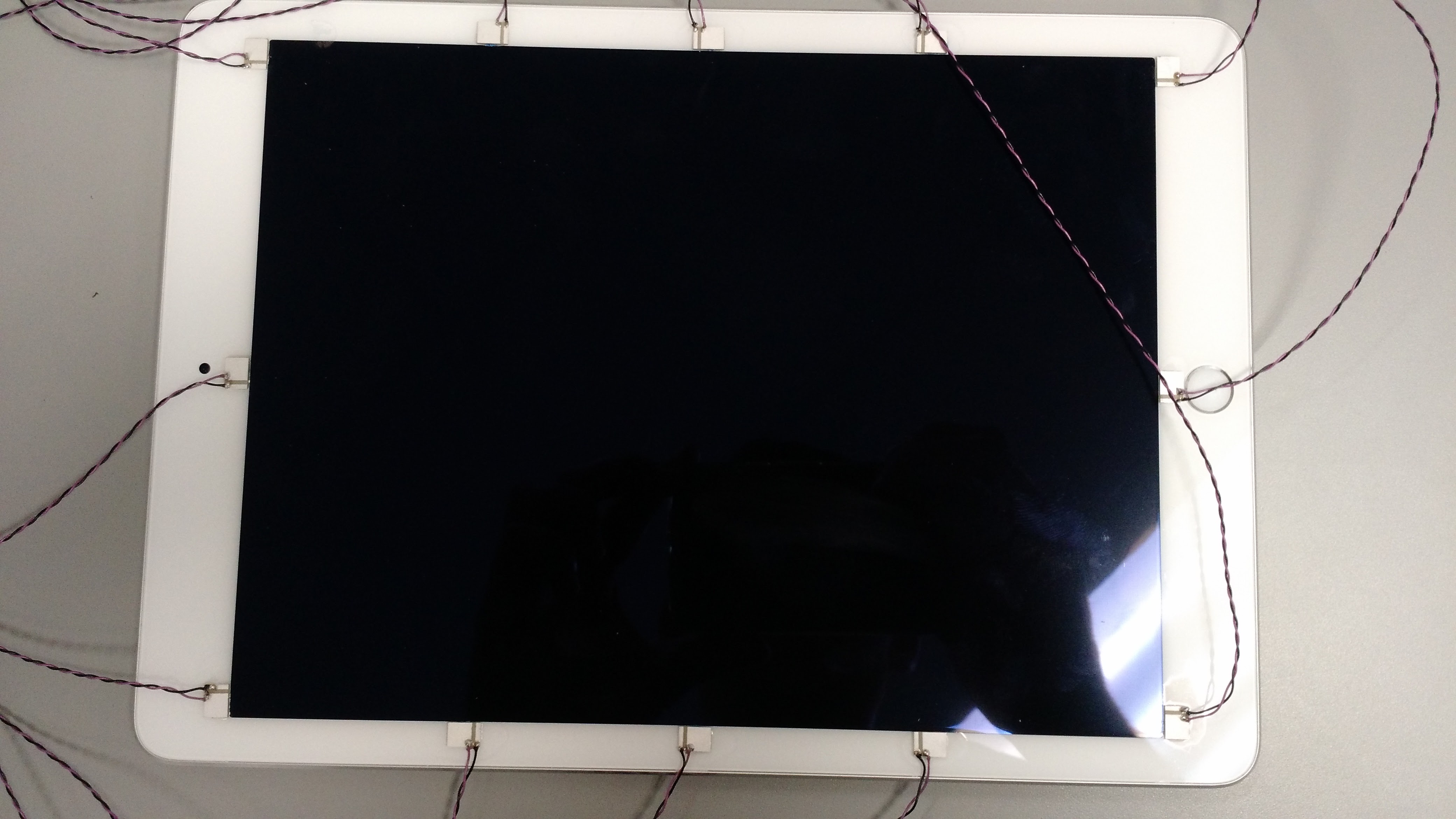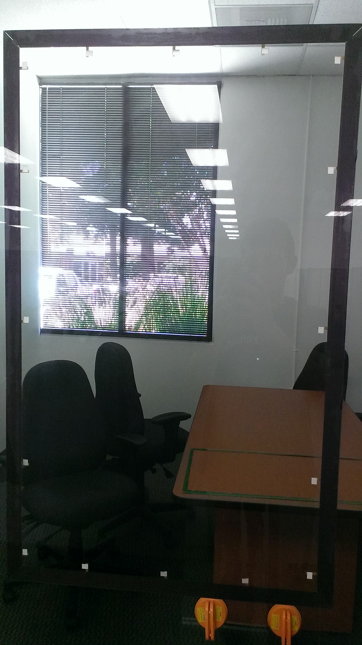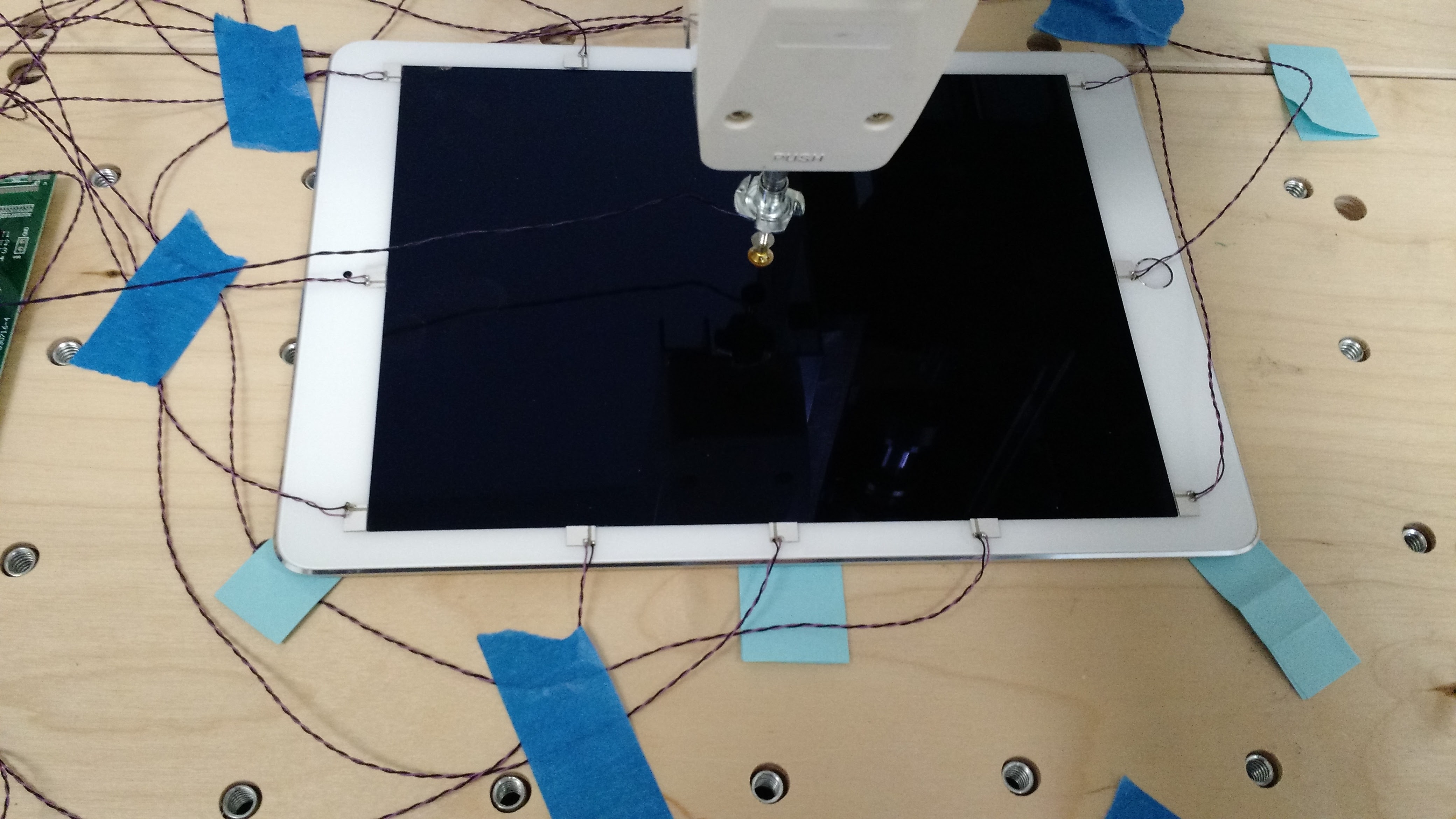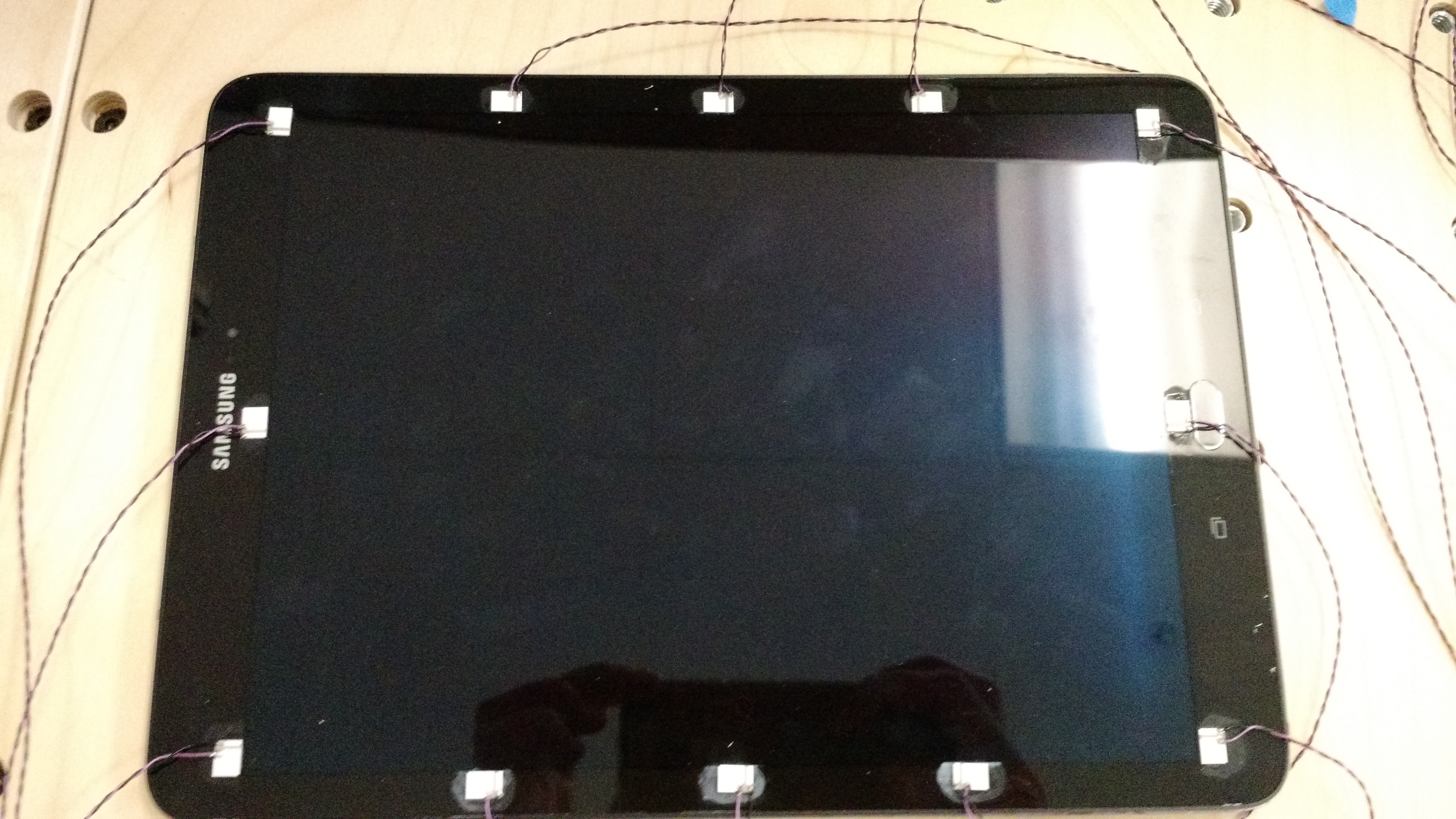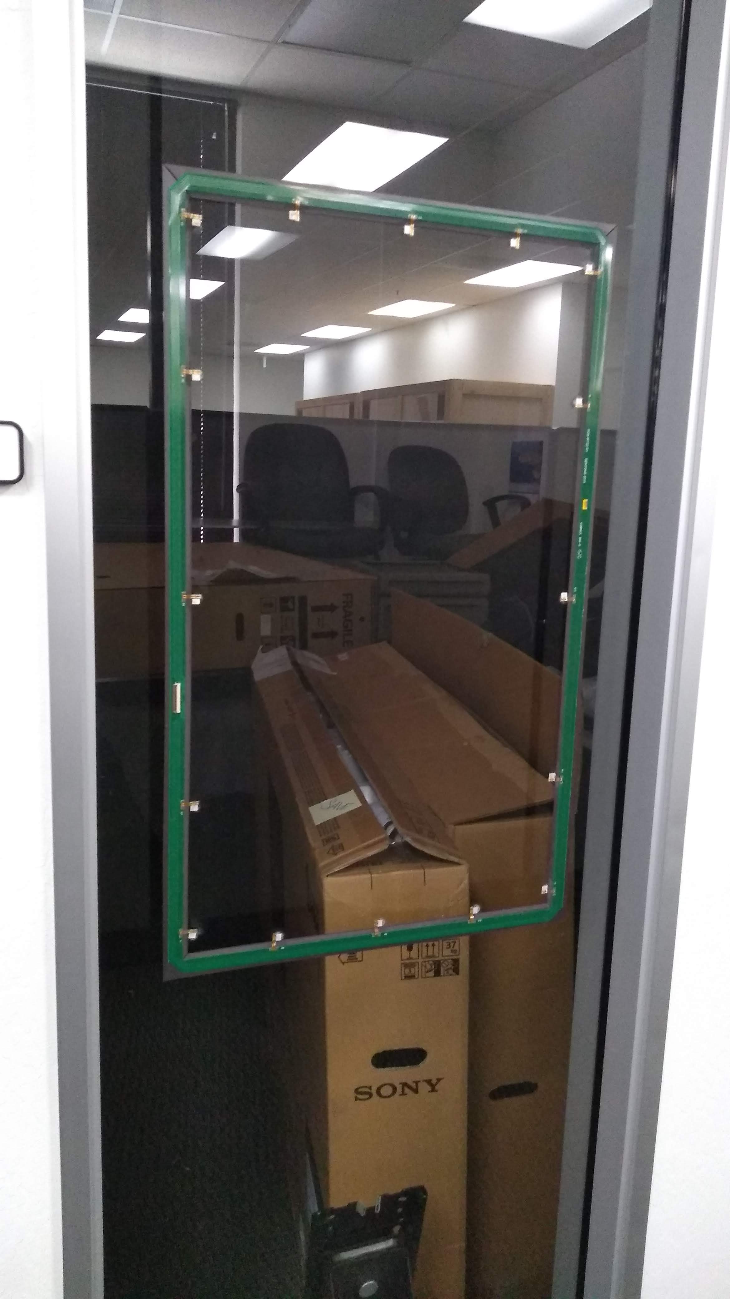 Description: I tested and implemented a touch sensor that could use existing glass to create a touch screen. This allowed us to mount the sensor to any glass and after putting a monitor behind it the panel could be used as a touch screen. I designed a sheet metal bracket that held a screen behind the glass as well as attached the sensor and screen together.