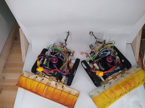Description: As a team of 4, we designed and built a prototype of a robot that is able to traverse a window and clean it. We competed against other teams of students and won first prize. In this project I did the majority of mechanical design, part selection, ordering and budgeting, documentation/website, and electrical assembly.